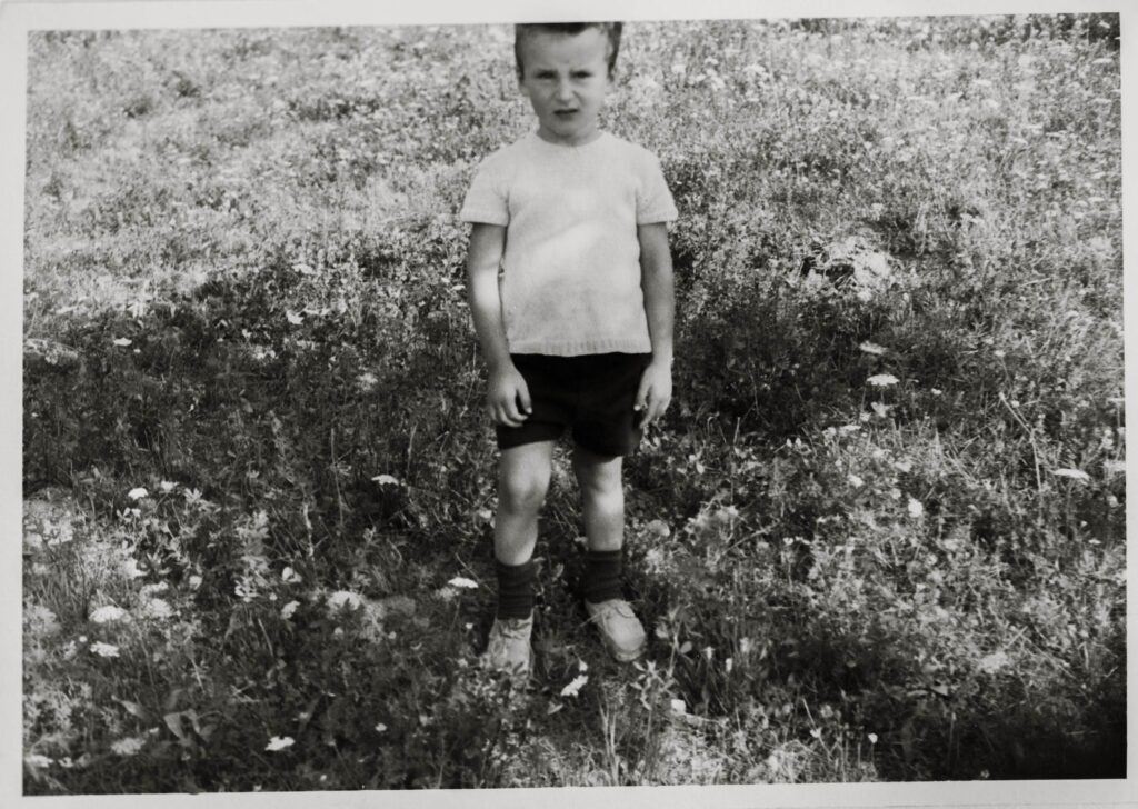 All’età di sei mesi venni seduto su una coperta posta in un prato vicino casa.