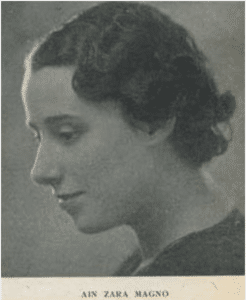 Ain Zara Magno : Alessandria 1913-) Scrittrice italiana. Tra le prime opere si segnalano Tempo d’estate (1933), con la quale si impose all’attenzione della critica, e Ritorno a Sinauen (1936). Al dopoguerra risalgono i suoi lavori migliori, Betelgeuse (1954) e Parole d’amore (1962). Si ricorda anche il lavoro in prosa Passioni (1938