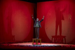 Ugo Dighero, volto noto e interprete brillante della scena italiana, diretto da Giorgio Gallione, porta in scena Lu santo Jullare Francesco, la fabulazione su San Francesco d’Assisi. Con divertenti giochi fisici e di linguaggio, da giullare racconta la storia del Santo che si definiva a sua volta “Giullare di Dio”. La povertà, la pace, il rispetto per la natura sono i fondamenti della “rivoluzione francescana” e, più che mai oggi, a distanza di secoli, sono istanze necessarie: le disuguaglianze sociali affliggono i popoli, le guerre dilagano a ogni angolo della terra, la natura sta cambiando con effetti disastrosi a causa dell’egoismo dell’essere umano. Ed è possibile che la complessa riflessione a cui siamo chiamati scaturisca dalla risata? Sì.
