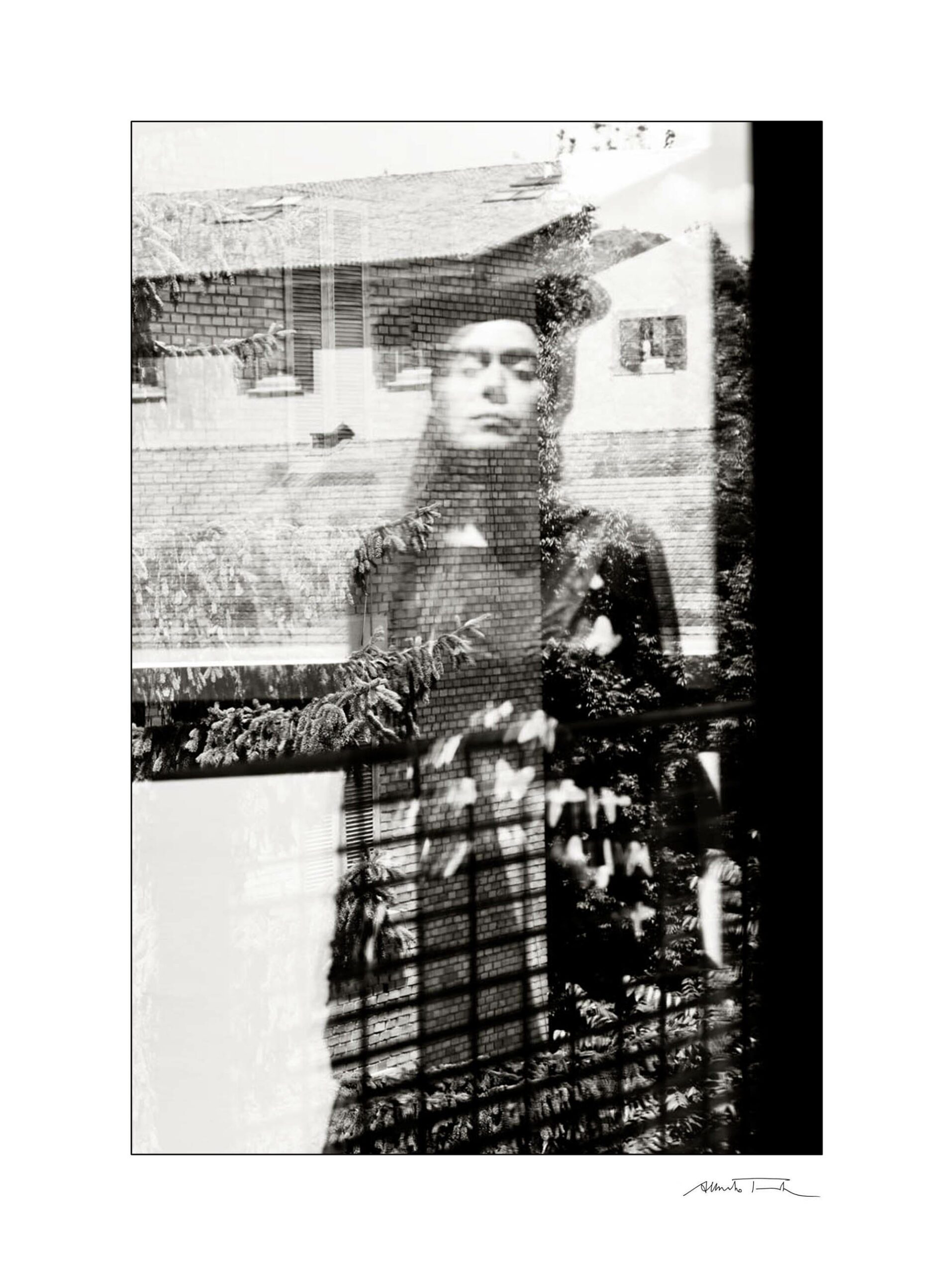 Questo è quanto le scrissi ripartendo : Sabato al Gerra ho visto dei riflessi nel vetro e ho immaginato qualcosa. L’apparecchio fotografico come una maschera, copre il volto e crea la giusta distanza tra l’occhio e quella realtà che la fotografia trasforma, tutto è possibile grazie a una visione interiorizzata e vicina all’Anima: guardare con il cuore le cose per poi “riscriverle” attraverso il proprio sguardo.