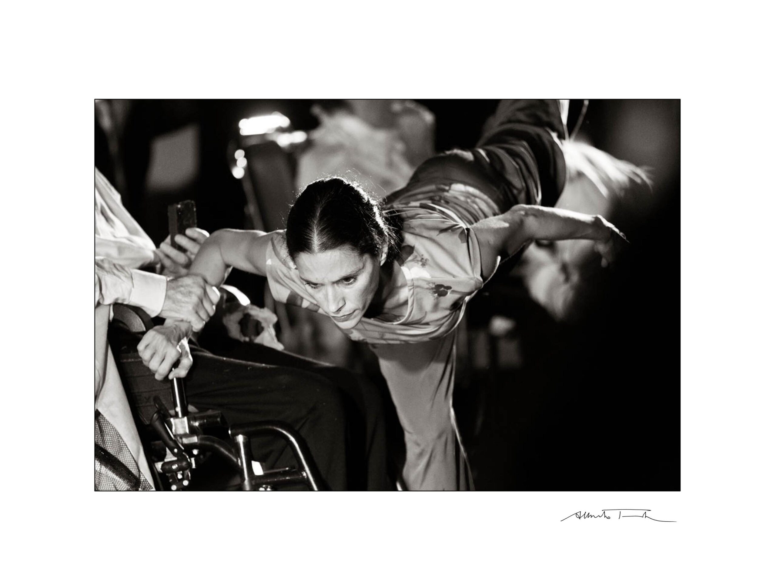 L’amica Elisa Cuneo mi invitò a vedere lo spettacolo, portai con me l’apparecchio e chiesi a Michela se fosse un problema se da seduto avessi scattato. Lei si disse daccordo. Senza disturbare, riuscii a fare un lavoro che stupì lei e l’intera compagnia.